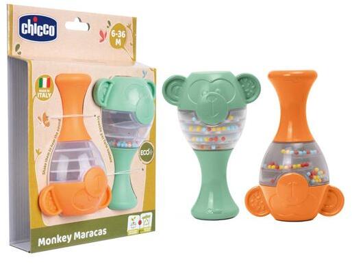 Chicco Maracas Eco majom csörgő esőbot 6 hó+ - 2 db-os