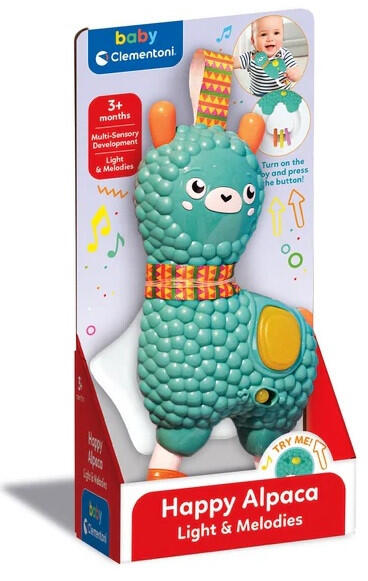 Vidám, színes és fejlesztő játék már 3 hónapos kortól – ismerd meg a Boldog lamá interaktív csörgőt, ami fényekkel, dallamokkal és texturált kialakítással segíti babád érzékszervi fejlődését! Ez a Clementoni Baby játék egy aranyos lamá formát ölt, amely nemcsak pihe-puha megjelenésével nyeri el a kicsik szívét, hanem a felfedezés örömét is magában hordozza minden gombnyomásnál és mozdulatnál.