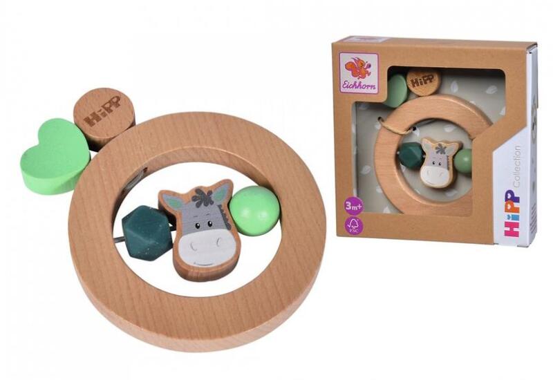 Az Eichhorn Hipp Collection fa csörgő egy bájos és szórakoztató játék, amelyet kifejezetten csecsemőknek és kisgyermekeknek terveztek. A fa csörgő hangot ad ki, amikor a csecsemő rázza. Az aranyos szamár díszítés és a szép, pasztell színek pedig további vizuális és érzékszervi ingereket nyújtanak.  A csörgő minőségi fa anyagból készült , amely biztonságos és természetes a gyermekek számára. A játékfa csörgő segít fejleszteni a csecsemők finommotoros képességeit, kéz-szem koordinációját és érzékszerveit.